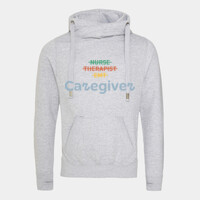 9.8 oz., 70% ringspun cotton, 30% polyester heavywight fabric; 100% cotton face; Cross over neck detail; Three panel double fabric hood; Thumb holes in the cuffs; Chunky flat lace drawcords; Earphone cord feed hidden inside pocket; Hidden earphone loops inside collar; Unisex style; Easy tear labels;
